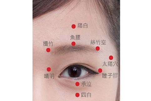 2.丝竹空(眉尾部分稍稍凹陷的部位):用中指或者食指慢慢地、轻轻地向内侧推揉。
