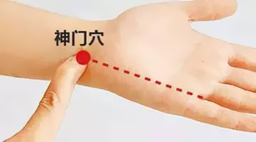 神门穴,位于手腕关节手掌侧,尺侧腕屈肌腱的桡侧凹陷处。有镇静安神、舒缓神经的作用,多用于心慌、心悸和失眠的治疗。