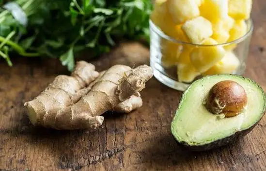 姜可以和许多水果蔬菜搭配榨汁。姜和牛油果都是含有抗老成分的食材,依照自己喜欢的口感比例搭配即可。