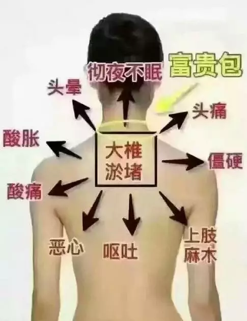 肩颈处有几个穴位“风池穴、风府穴、风门穴”,这几个穴位是“风寒湿邪气”进入人体的主要通道,风寒湿邪进入肩颈后,就会在这里形成瘀阻。