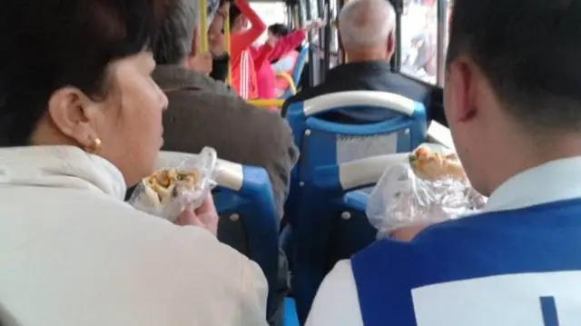 路边购买的早餐,边走边吃,手动,脚动,嘴动,全身运动……