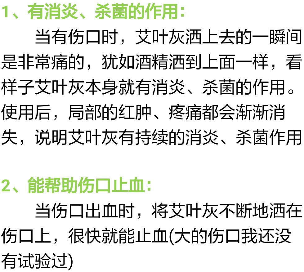 艾叶灰有如下几个功能: