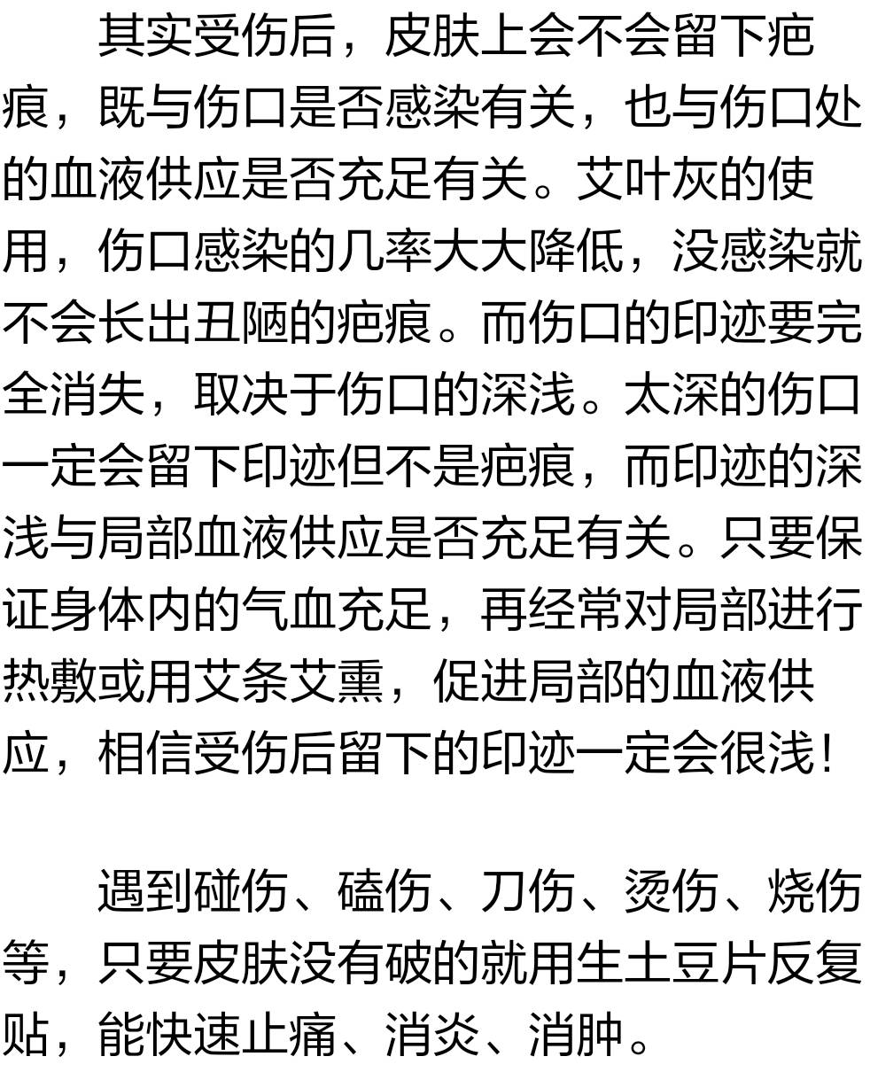 1、长了痘痘,发红发肿,这时您抹上点艾灰,会很快干瘪,慢慢就掉了,不会留痘印哦